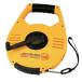○巻取時の衝撃を吸収するショックアブソーバと、シンプルな巻取機構で故障も少なく、プロの作業から学校のグラウンド測定まで幅広く対応できる巻尺。