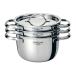 熱伝導率、熱拡散率の高いアルミニウムを保温性、耐久性に優れてたステンレスと丈夫なチタン入り電磁性ステンレスでサンド。
