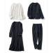 素材:ブラウス:ポリエステル80%・綿15%・ポリウレタン5% ジャケット・パンツ・ワンピース:ポリエステル95%・ポリウレタン5% 裏地:ポリエステル100% ※手洗い可 ※ジャケット:裏地付き、ポケット付き、フロントホック仕様 ※パンツ:裏地なし、ポケット付き、ウエストわきから後ろゴム仕様 ※ワンピース:身ごろのみ裏地付き、後ろファスナー仕様 ●セット内容 / 長袖ブラウス1枚、長袖ワンピース1枚、長袖ジャケット1枚、フルレングスパンツ1本