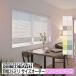 ドレープとレースをボーダー上に配した生地が1台に2枚付き、生地が上下にスライドすることで、生地を降ろしたままでもヨコ型ブラインドのように簡単に光の量が調節できます。幅10cmから作れ、スリット窓に最適。