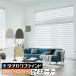 ドレープとレースをボーダー上に配した生地が1台に2枚付き、生地が上下にスライドすることで、生地を降ろしたままでもヨコ型ブラインドのように簡単に光の量が調節できます。幅10cmから作れ、スリット窓に最適。