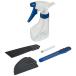 フィルム貼りに必要な、散水用ハンドスプレー/水切り・気泡抜き用スキージ/型取り用ダマート/裁断用カッター/仕上げ用プラヘラのセットです。