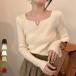 メール便送料無料 「出勤用服として最適」ニット トップス リブ カットソー レディース 長袖 きれいめ 柔らかい インナー キーネック プルオーバー セットインスリーブ 細見え 上品 伸縮性 中厚手 肌触り 良い 黒 白 春 秋 冬 ロングシーズン