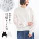 プルオーバー レディース トップス 長袖 スウェット 透け感 シアー チュール 花柄 ぽわん袖 異素材 春 秋 オシャレウォーカー「メール便不可」「20」
