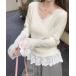 キーワード:ニット セーター レディース vネック フリル レース 長袖 無地