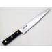 刃長270mmの筋引きです。 9寸(270)の筋引は、ホルモンや焼き肉用のお肉の 切り分けやスライスなどにも、よく使われます。 正広特製の炭素綱(さびる鋼)を使用していますが、常に使っておられる場合は、肉の脂がつく事もあり、わりと錆びにくいのもこの包丁の特長です。