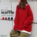 ニット ワッフル プルオーバー レディース トップス セーター ロング オーバー バルキー 長袖 クルーネック ボートネック リブ チュニック ドルマン ゆったり