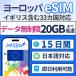 ヨーロッパ33ヵ国eSIM 15日間 20GB 高速データ通信 5G/4G対応 イギリス・フランス・イタリア・ドイツ・スペイン など 旅行・出張に最適 テザリングOK 簡単設定