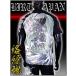 ベースを手にした姉御の周りにタトゥー・モチーフがプリントされたデザインの半袖Tシャツです。