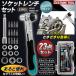 ラチェットハンドル・エクステンションバー・精密ビット12点・ヘックスソケット9点がセットになったソケットレンチです。