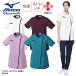 スクラブ ファスナー レディース 女性用 白衣 医療 ナースウェア 白 医師 ドクター ストレッチ 制菌 静電 透防止 ミズノ MZ-0238 刺繍 プリント