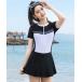 商品名:キッズ水着 半袖スポーティバイカラーワンピ風オールインワンスイムウェア