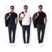 ストレッチ素材のポリエステル100%で動きやすく、工業洗濯にも対応。左胸ポケットにはネームループが付き、両脇ポケットと後ろファスナーで実用性も抜群です。