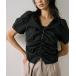 キーワード:ブラウス シャツ レディース ノーカラー フリル 洗える 半袖 無地