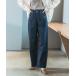キーワード:ジーンズ デニム デニムパンツ レディース ウエストゴム ハイウエスト フルレングス ワイドパンツ 無地