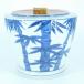 茶道具 古染付写 竹絵 水指 西村 徳泉 作 18.6cm×17.3cm 口径内寸12.5cm×11.4cm 高さ(摘まみ含む)17.3cm 蓋の金彩のくすみ、木箱にシミ汚れはありますが、本体はしっかりしています、お稽古にお使いになるには差し支えありません。注)水漏れは確認していません。