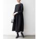 商品名:SHIPS any:〈手洗い可能〉ジャカード ウエスト タック ノーカラー ワンピース[NAVY BLUE]