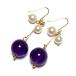 K18 宝石質 AAA アメジスト 10mm & 淡水真珠 チェーンデザインピアス/ピアスキャッチ付き
