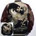 迫力満点の刺繍テクニックがコーデにインパクトを与えてくれるメンズ和柄スカジャン!光沢感のあるサテン生地に細部までこだわった繊細な刺繍が和の雰囲気たっぷりです!衿や裾・袖口には、ニットリブを使用し、適度なフィット感が良質な着心地をサポート!和ミックスをモノにしたコーディネイトでジャパニーズオーラを存分に発揮してみて!!