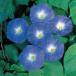 1つの花径に3〜5花をつける西洋系の朝顔です。葉は丸く、さわやかな空色の花は短日開花性により暖かい地域で8月以降から霜のころまで咲き続けます。とても生育がよく主に垣根や日除けに適します。