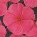 分枝性に優れ大きな花弁が特長。従来種と比べ高温乾燥、低温など厳しい条件下でも強い性質。ローズ色にダークローズの目入り。