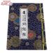 「四国八十八ヶ所納経帳(中判サイズ) 線描画入り 紺金襴表紙 ビニールカバー付」は、四国八十八ヶ所第1番・霊山寺から第88番・大窪寺までの88ヶ寺の御朱印用ページに加え各お寺の線描画が掲載され、高野山奥の院(線描画無し)の御朱印ページを合わせて89ヶ寺分のご朱印ページと空白ページが8ページ綴じられた持ち運びやすい中判サイズの納経帳です。表紙は豪華な紺地の金襴織物で装丁されていて、各頁は、ご朱印を戴いた際に墨が裏の頁へ染むのを防ぐために、袋とじの中に和紙を挟んだ三重の構造になっています。御朱印帳の中でも、特に巡礼の寺院へお参りしてご朱印をいただくための物を納経帳(のうきょうちょう)と呼びます。四国88箇所をはじめとする各巡礼寺院では、お寺の中の本堂などでお経をあげたり、写経を納めたりした証として、敷地内にある納経所(のうきょうしょ)で御朱印をいただく習慣があることがその所以です。