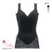 パッドの出し入れができるので、ブラジャーの有り無しどちらでも着用が可能です。カップ脇布でおさえて、バストすっきりシルエットに。脇上辺は折り返し始末でくいこみにくく圧迫感の少ないつけごこちです。