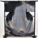 美品 訪問着 身丈157cm 裄丈66cm M 袷 吉乃一廉 落款あり 草花 流水 金彩 絞り 黒 正絹 逸品 中古