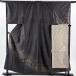 美品 訪問着 身丈156cm 裄丈67cm M 袷 名古屋帯セット 紬地 ひょうたん シルエット柄 黒灰 正絹 秀品 中古