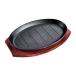 [ステーキグリルパン]:鋳鉄製ファヒータステーキプレートグリドルパン.和風スタイリッシュな楕円形.竹プレート付き.