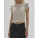 希少性の高い上質なスーピマコットンを使用したカットソー素材のTシャツ。シャリ感と程良い透け感があり、コンパクトなサイズ感が女性らしい一枚。短めの着丈なので、ハイウエストやウエストにディテールのあるカジュアルなボトムスとの合わせが好相性です。