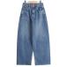 太ももから入るカーブラインが新鮮なバギータイプデニム。ハイウエスト仕様で腰回りをしっかりカバーし、シンプルなトップスはもちろん、ショート丈トップスとも好相性です。ボリューム感のあるシルエットながら、太もも・ヒップにゆとりを持たせたリラックスした穿き心地が魅力。ストレッチデニム地を採用し、従来のポリウレタンストレッチよりも高い伸縮性を実現。コットン98%・ポリウレタン2%のバランスで、ラクさと美シルエットを両立した一本です。