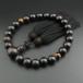 ・葬儀、お通夜、法事、お墓参りにて、すべての宗派のお客様にお使いいただける男性用の「略式数珠」でございます。素材は、人気な黒檀でございます。アクセントには、虎目石