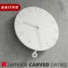 2010年に発表、グッドデザイン賞を受賞したCARVEDシリーズの「CARVED SWING」です。文字盤から文字を削り取ったような印象を与えるCARVEDシリーズ。その削り取った文字がこぼれ落ちて振り子になりました。6の数字がゆっくり振れて時を刻みます。