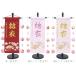 お子様のお名前や生年月日を、金や紫の糸で刺繍した女の子向けのお名前旗となります。扇やお花の絵柄もすべて刺繍となっておりますので、雛人形と一緒にお名前旗を飾るとひな祭りを華やかに彩ります。名前旗の両脇には吊るし飾り(マリ三連飾り)が付いておりますので、より一層豪華な刺繍名前旗となります。