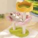 多段階:登り降りできるステップがたくさんあって飽きないね。猫ちゃんの気分や体力によって、多段階の登り降り階段を設計しています。頂上まで気分や体力で、登り降り階段から登れます!