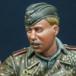 Alpine Miniatures製レジンフィギュアです。こちらは、ヘリンボン・ツイルと 呼ばれる生地で作られ、 背中の継ぎ目のない、 戦車兵用の迷彩ユニフォームを 着用した大戦後半定番の スタイルの戦車兵。 将校と組合せて、前線視察 している様が一番グッときますが 他との組合せも有用でしょう。 こちらも略帽とゴーグルの 2ヘッド付き。