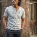 首まわりの開きでラギッド感を演出できるヘンリーネック仕様