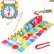商品名: 木製モンテッソーリ7-1パズルセット ? シェイプソーターカウントゲーム 就学前教育 数学スタッキング ブロック 学習 木製数学 数字 形状 ピッキング 積み重ね 数える 釣りセット 学習時計付き Wooden Montessori 7 - 1 Puzzle Set?Shape Sorter Counting Game, Preschool Education Math Stacking Block Learning Wood Math, Number, Shape, Picking, Stacking, Counting, Fishing Set with Learning Clock