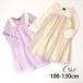 長袖ワンピース レイヤード風 ドットチュール切替 リボン 女の子 キッズ 春秋 綿100% 子供 子供服 crescent クレセント N62322【メール便対象】
