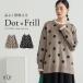 ニット 長袖 レディース トップス セーター クルーネック ドット柄 水玉柄 ジャカード ジャガード フリル 配色 お尻が隠れる 秋 冬「メール便不可」「30」