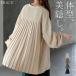 シャツ バックプリーツ ブラウス レディース トップス ロング ロングシャツ プルオーバー スキッパー プリーツ ボリュームスリーブ チュニック