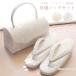 バッグ・草履の鼻緒共に美しい和柄生地を使用し、優美な装いを格上げするデザイン。