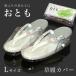 雨の日の「おとも」に。草履を入れて使う草履カバー(Lサイズ)です。雨ふり、雪の日などの足元に。草履、足袋が濡れたり、汚れたりするのを防いでくれます。草履を入れて、カバーの両側についている紐を鼻緒の下側からくぐらして巻き、ホックで止めてご使用ください。かぶせの草履は比較的入れやすいですが、合皮草履は滑らないので、少し入れにくいかもしれません。※草履にカバーをつけたままで、保管しないでください。