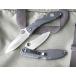 ハンドルは以前と同様厚手のザイテルで、二本の深い溝がつけられています。 ハンドル後部には白金製のくものマークがはめ込まれています。また、ハンドル の片側の内部にステンレス中板が埋めこまれており、ナイフを一層頑強にして います。クリップもこのステンレス中板にしっかりと固定されることになります。
