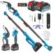 高枝切り電動チェーンソーとたかえだ電動ハサミを自在に切り替え,高い所の枝も楽に切断できます。ポールを外すと、手持ちの 6 インチチェーンソーや電動ハサミとしても使え,低い木の枝も簡単に切断できます。作業環境やニーズに合わせて使えます。?伸縮ポールは無段階で 125cm から 260cm まで伸ばせ、組み立てが完了すると、製品は最長290 cm、最大 580cm の動作範囲が可能で,作業がより安全かつ効率的に行えます。ヘッド部分も 0 - 180° 自由に角度調整でき,枝切り作業がさらに楽になります。