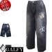 2024年冬新作 GALFY.E.L.N/ガルフィー 骨骨カラーデニムパンツ 怒顔アングリー キャラ刺繍 ワイドシルエット DPジーンズ 黒ブラック:L中型犬/XL大型犬 144012
