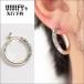 ピアスの針の部分が可動する開閉式のピアス で、この開閉式により、ピアスのキャッチを紛失する不安が 解消されました。金属アレルギーを起こしにくいとされる k18製の針を使用し、アレルギーが原因でシルバー製がお悩 みだった方にも着用でき、(個人差があります)そうでない 方も、ピアスの針とボディを接続するカシメにもk18ゴール ドを使用し、見た目にも金銀のコントラストが美しく着用時 にも根元でゴールド色がさりげないアクセントとなっている ワンランク上のアイテムをお望みの方にも最適です。模様を 1つ1つタガネで刻印してますので、個体差があり、同じ物 は2つとない特別感のあるフープピアスです。
