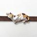 何かを狙っている様子の三毛猫を帯留めにしました。