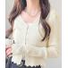 商品名:【mily bilet】透け感と上品なきらめきで魅せる♪ 透かし編みシルバーボタンカーディガン